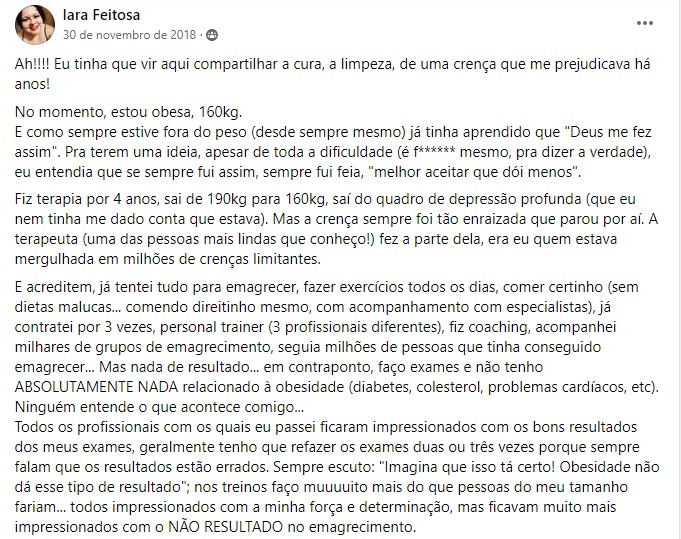 Quando eu finalmente entendi isso, e me dei conta de que precisaria formatar minha mente subconsciente, consciente e organismos, antes de uma dieta ou atividades físicas, foi MUITO mais simples que conseguir chegar no meu peso ideal e ter o corpo dos meus sonhos